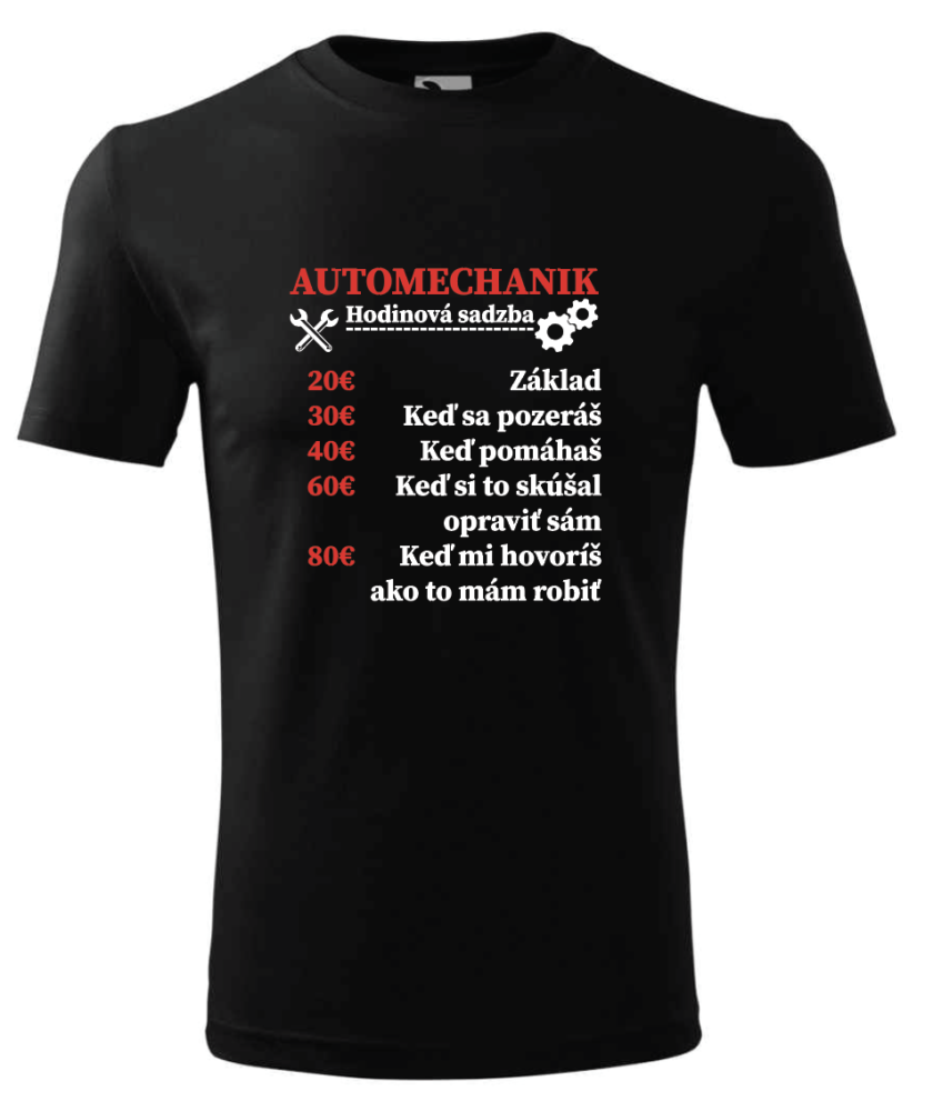 Tričko Automechanik, hodinová mzda